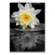 Photograph of a water lily in my tiny pond. Love the reflection. Black and white with yellow selective colour.