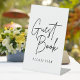 Guest book please sign wedding reception tabletop stand sign for a signing table for your guests. Black and white design with simple and minimal calligraphy.
