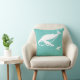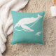 part of the ocean themed decor mother and baby white whale on teal blue pillow on one side and teal and white strip on back. design by Sandy Closs Ocean, beach, sea shore, marine, nautical,water boat