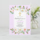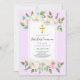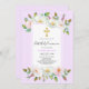 White and pink wild dog roses lavender purple floral girl First Holy Communion invitation. This design features garlands of watercolor white and pink dog roses with green leaves on the upper and bottom parts and your text in a frame. The back is of lavender colour.