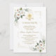 White Wild Roses Gold Glitter First Holy Communion Invitation