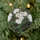 This pretty pendant style ornament features a detailed photograph of a pretty clump of white wildflowers. The photo was taken in the UK using macro photography for a detailed result.