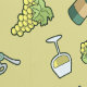White wine. Bottle, glass, corkscrew and grapes. Seamless pattern. Custom background colour.