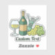 White wine composition. Bottle, glass, corkscrew and grapes. Custom text.