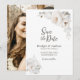 This elegant white winter floral wedding save the date is designed for couples seeking sophistication and timeless beauty in announcing their special day to loved ones. Your favourite photo of you and your beloved can be included on the reverse side, making this save-the-date a truly unique announcement as you bring joy to your guests' mailboxes and evoke excitement for your upcoming nuptials with this Save-the-Date.
