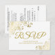 White with Elegant Gold Lace Frilly Wedding RSVP Card