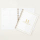 Professional planner features custom monogram, name and text in gold classic serif font style with gold border on white background.