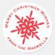 A festive and modern red snowflake sticker with a custom message of holiday cheer and your family name makes the perfect finishing touch to your Christmas card mailing.