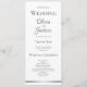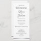 An elegant white wedding menu with two silver grey stripes at the bottom.