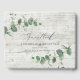 Beautiful delicate eucalyptus foliage wedding design. Part of a modern collection. white wood backer