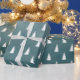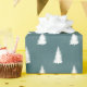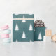 Christmas holiday gift wrapping paper featuring a white spruce tree in a repeat pattern on a blue spruce ombre forest background.