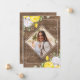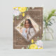 Unique and trendy congratulations graduate announcement and celebration party invitation card, with a beautiful image of yellow an white roses wreath on a rustic classic farmhouse style wooden background. With room to customize or personalize with a photo, the name of the graduate, class graduation year, high school, future college or university name, and celebration party event information. Let the family, friends and neighbours know there is a happy graduate ready to conquer the world, and invite everybody to come celebrate the happy event with you!