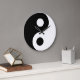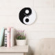 A white yin yang design on a clock face. You can choose customize this design by changing the background colour.