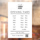 A simple custom business opening hours and qr code. This versatile template allows you to easily design a custom opening times list for your store, salon, restaurant, cafe or any other business.