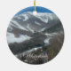 Beautiful round ornament depicting the ski slopes at Whiteface Mountain in New York, including the word "Whiteface" in script. Same design on both front and back.