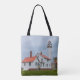 Tote Bag featuring a photo of the Whitefish Point Lighthouse on a cloudy an rainy day. The Whitefish Point Light, a lighthouse in the Upper Peninsula of Michigan, is the oldest operating light on Lake Superior. Looking for more prints or products? Feel free to visit my store: http://www.zazzle.com/timelessmomentsphtgy