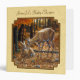 A whitetail doe fondly nuzzles her six month old fawn lying in a soft bed of autumn leaves. Fall colours are everywhere in the maple trees of the surrounding forest, giving the scene a warm and cozy orange glow. Realistic artwork created from an original oil painting by equine and wildlife artist Crista S. Forest.