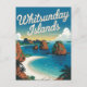 A stunning and nostalgic depiction of Whitsunday Island, a tropical paradise in Australia known for its breathtaking beaches, crystal-clear waters, and lush vegetation. The design captures the island's famous Whitehaven Beach, with its pristine white sands and vibrant turquoise waters, surrounded by the beauty of the Great Barrier Reef. Rendered in a vintage style, the artwork evokes the serene and idyllic atmosphere of Whitsunday Island, inviting viewers to relax in its natural beauty, explore its marine life, and enjoy the tranquil island lifestyle.