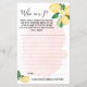 Lemons Who am I? Bridal Shower Game. Change wording to the design. For additional customization (font colour, font style ), click on personalize, scroll down and click on the link "Edit using Design Tool". ** Check collection for all matching designs **