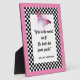 Whimsical digital art features pink background, black and white chequerboard frame, watercolor pink butterfly, and centre quote from Alice in Wonderland which reads: "Who in the world am I? Ah, that's the great puzzle."