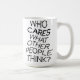 Start your day with a dose of attitude! This cup proudly displays the message "Who Cares What Other People Think?", making it the ideal companion for coffee lovers who live unapologetically.
