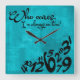 Aqua blue and black Who cares, I'm always on time square clock. Whatever Wall Clocks.