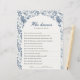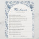 Set against a crisp white background and adorned with intricate blue floral illustrations, this game card feels as if it were plucked straight from a secret garden. It matches flawlessly with any blue and white bridal shower theme, especially those embracing vintage elegance, tea party charm, or soft springtime pastels. The feminine design evokes grace and whimsy, making it a keepsake-worthy piece for guests and the bride-to-be alike.