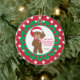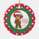 This will be a keepsake for Grandma & Grandpa of all times! It's has a Christmas bear wearing a Santa hat. Personalize with the year. It has "Who needs Santa when you have Grandma & Grandpa" on the centre white circle. The outside of circle is a red & green striped pattern. There's a green scalloped border around centre white circle. The outside background is red with white polka dots. Check out the other family member ornaments in our store.
