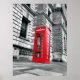 Set against a black and white background, this iconic red phone booth in London is waiting for someone to call home.