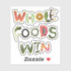 Show your love of whole foods with this phonetic food quote that says "Whole Foods Win" spelled with watermelon, honeydew, orange, lettuce, eggplant, fennel, olives, okra, dragon fruit, spinach, wheat grass, Italian parsley, and nectarine.