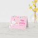 This fun 3rd birthday card features a cute whimsical party llama design with a llama eating a birthday cake. There are candles, bunting and stars and confetti on a pink background. Personalize the front with a name and the inside with your special greeting message.