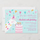 Whole Llama Fun Cake 4th Birthday Aqua Invitation