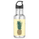 Painting of a whole ripe pineapple with leaves, is printed three times on custom water bottles. The light yellow background can be customized or deleted.