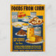 Poster showing an assortment of foods and dishes, along with corn starch, corn oil, and corn syrup.