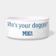 You'll love this adorable and funny dog bowl for your canine furry family member! The text is "Who's your doggie? ME!" The word "ME" has cute little eyeballs at the top.