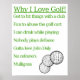 If you think about it Golf is almost the perfect game. Hitting stuff with a club, drive somebody else's vehicle, and no refs in those zebra striped shirts.