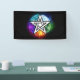 Artistically drawn, luminous pentagram with five magical elements, water, earth, fire, astral, air on black background. Wiccan pentagram. Wicca