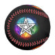 Artistically drawn, luminous pentagram with five magical elements, water, earth, fire, astral, air on black background. Wiccan pentagram. Wicca