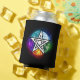 Artistically drawn, luminous pentagram with five magical elements, water, earth, fire, astral, air on black background. Wiccan pentagram. Wicca