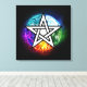 Artistically drawn, luminous pentagram with five magical elements, water, earth, fire, astral, air on black background. Wiccan pentagram. Wicca