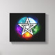 Artistically drawn, luminous pentagram with five magical elements, water, earth, fire, astral, air on black background. Wiccan pentagram. Wicca