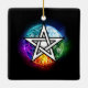 Artistically drawn, luminous pentagram with five magical elements, water, earth, fire, astral, air on black background. Wiccan pentagram. Wicca