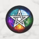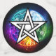 Artistically drawn, luminous pentagram with five magical elements, water, earth, fire, astral, air on black background. Wiccan pentagram. Wicca