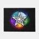 Artistically drawn, luminous pentagram with five magical elements, water, earth, fire, astral, air on black background. Wiccan pentagram. Wicca
