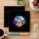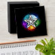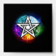Artistically drawn, luminous pentagram with five magical elements, water, earth, fire, astral, air on black background. Wiccan pentagram. Wicca