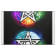 Artistically drawn, luminous pentagram with five magical elements, water, earth, fire, astral, air on black background. Wiccan pentagram. Wicca