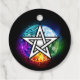 Artistically drawn, luminous pentagram with five magical elements, water, earth, fire, astral, air on black background. Wiccan pentagram. Wicca