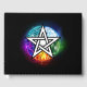 Artistically drawn, luminous pentagram with five magical elements, water, earth, fire, astral, air on black background. Wiccan pentagram. Wicca