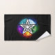 Artistically drawn, luminous pentagram with five magical elements, water, earth, fire, astral, air on black background. Wiccan pentagram. Wicca