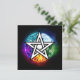 Artistically drawn, luminous pentagram with five magical elements, water, earth, fire, astral, air on black background. Wiccan pentagram. Wicca